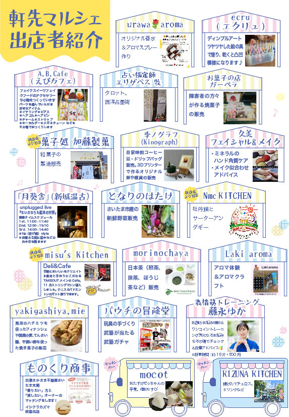 また、開催にともない出店者も募集をしています。浦和で何か始めたい、好きなことを誰かに届けたい、いつか自分のお店を持ちたいなど、興味のある方は是非ご検討ください。出店についてはこちら